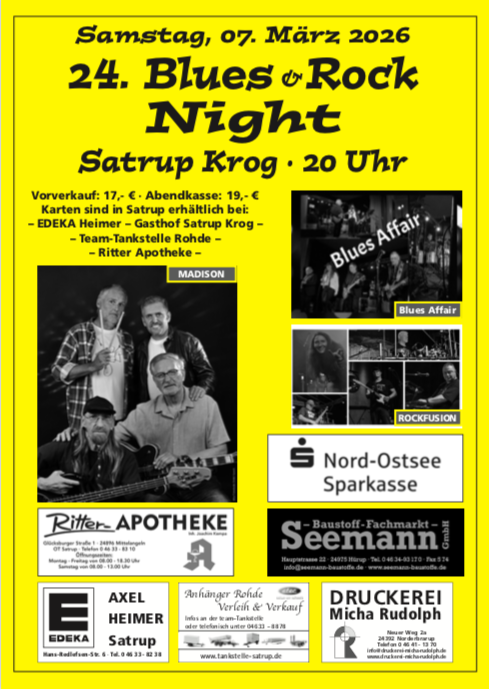 Veranstaltungsort: Satrup Krog Veranstaltungsdatum: 27.03.2025 Ticketpreis: 69,90 € Beginn: 19:00 Uhr Einlass 30 Minuten vorher